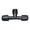 As one of our most adaptable irrigation fittings, this tee features the secure Easy Loc locking collar system on the tubing connections. The collars screw over the tubing to lock it against the barb, providing a leak-proof seal that is fully reusable. The threaded outlet is a standard 3/4" MHT, compatible with any standard garden hose or hose-threaded accessory.
