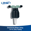The Orbit 2-Way 1/4" Outlet Manifold (SKU: RB2M) is one of the simplest and most affordable tools for converting an existing 1/2" threaded sprinkler riser into a drip irrigation supply point. With two swiveling 1/4" barbed outlets, it lets you run up to two individual lines of 1/4" Soaker Dripline or standard 1/4" micro tubing directly from a riser that once fed a pop-up sprinkler head. No additional fittings, no adapters, no mess — just screw it onto a 1/2" MPT riser and connect your drip lines.