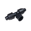 The 3/4" Easy Loc Tee x 3/4" PVC Slip is a specialized hybrid fitting designed to integrate flexible poly tubing into a rigid PVC system. It features two 3/4" Easy Loc connections on the run and a 3/4" PVC Slip (Socket) on the center branch. This unique configuration allows you to install a water timer or PVC manifold and transition directly to your drip mainline without needing multiple threaded adapters.