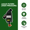 The Amiad High-Pressure Filter provides a virtually indestructible, professional-grade solution for protecting your drip irrigation or sprinkler system from debris. Sturdy and exceptionally strong, these standard Amiad models feature a heavily reinforced frame designed specifically to handle extreme constant pressure situations up to 140 PSI. This allows you to safely install them directly onto your mainline before your automated timers or irrigation valves without any risk of the canister stretching or bursting under continuous strain.