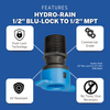 The Hydro-Rain BL-436-005 is the ideal solution for creating a secure transition from 1/2" Blu-Lock swing pipe to any component with a standard 1/2" female pipe thread (FPT) inlet. It is perfect for a wide range of irrigation tasks: