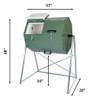 This 33 gallon Jora compost tumbler is ideal for small households of 1-4 people. Toss in your fruit, vegetable, and grain scraps and in no time you'll have rich, black organic compost for your garden or houseplants. Dimensions are 37" L x 27" W x 32" H.