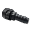 This manifold start fitting has 1" female pipe threads on one end and a 3/4" barb on the other. It connects a PVC line to 3/4" tubing with a hose clamp.