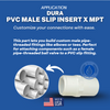 The PVC Male Slip Insert x MPT (also known as a "Fitting Adapter" or "Street Adapter") allows you to add a Male Pipe Thread (MPT) outlet directly into an existing PVC fitting. Before you start cutting pipe, make sure you have a reliable pair of cutters to ensure clean, square cuts for a leak-free bond. We offer several sizes to fit your specific pipe needs, including 1", 1-1/2", and 2" models, as well as the robust Fiskars PVC Cutter.
