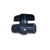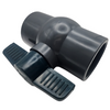 These ball valves are made of PVC and have threaded fittings on both ends.