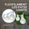 Wintergreen's line of FlexFilament patio string light sets offer the look of vintage incandescent visible-filament lights in tough, energy-efficient LED. The curved filaments are lined with LED diodes that produce a beautiful light. Yet their operating costs are a fraction of incandescent, and of course they always remain cool to the touch, making them ideal for any application.